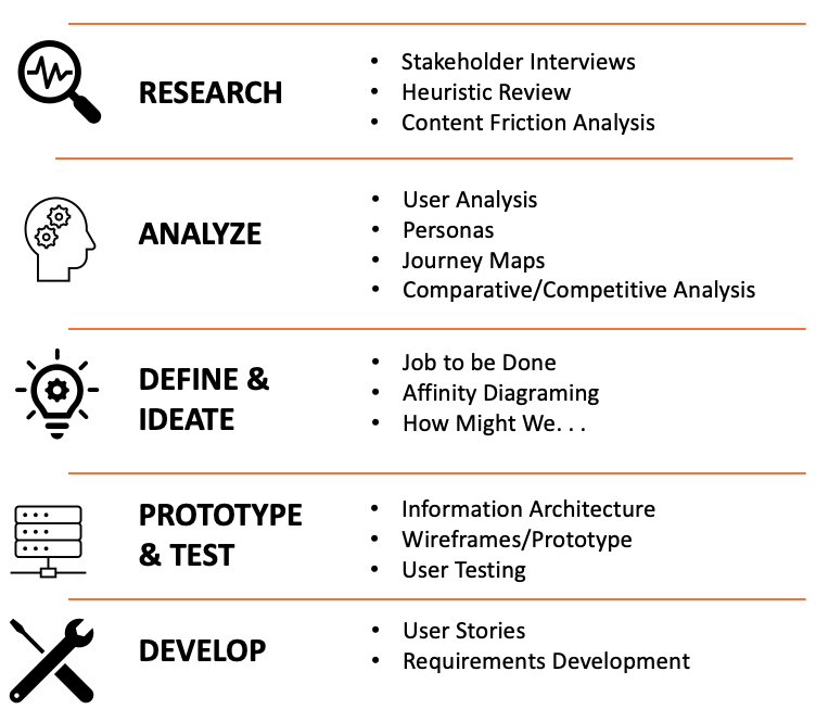 Although this project was primarily focused on improving the experience of Stage 1: Discovery & Enrollment, understanding the complete journey of the user allowed us to include enhancements that may not have been apparent when looking at a single stage.