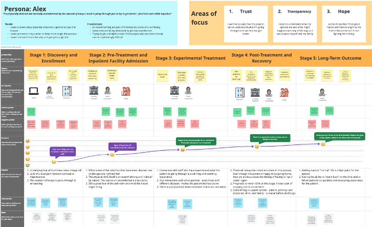We developed a current state journey map based on surveys and interviews of patients, clinicians, and researchers. By doing so we were able to:
