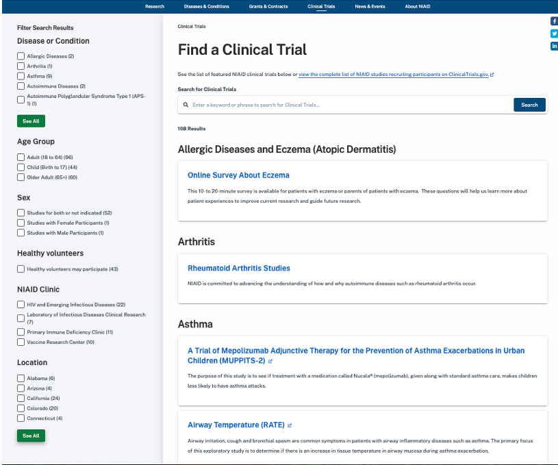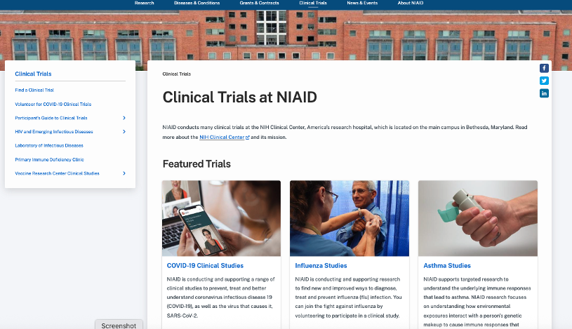 No integrated NIAID Perspective of clinical trials - 4 separate clinics not connected to an NIAID view on the site