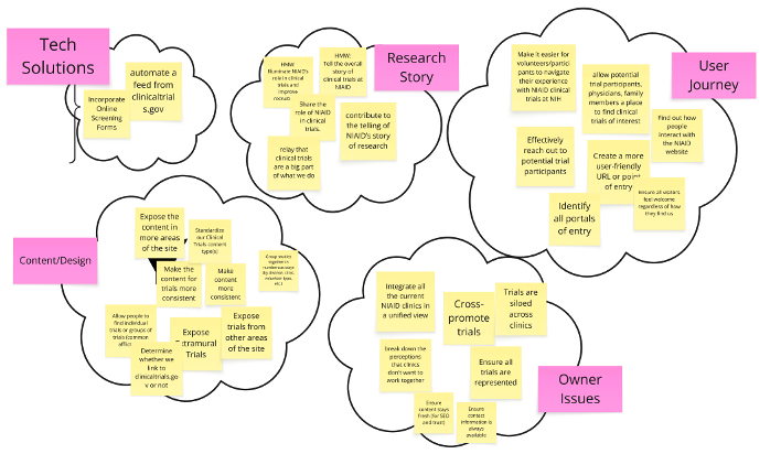 We pulled all user and stakeholder feedback and ran it through an affinity diagraming exercise, breaking it down into 5 distinct categories.